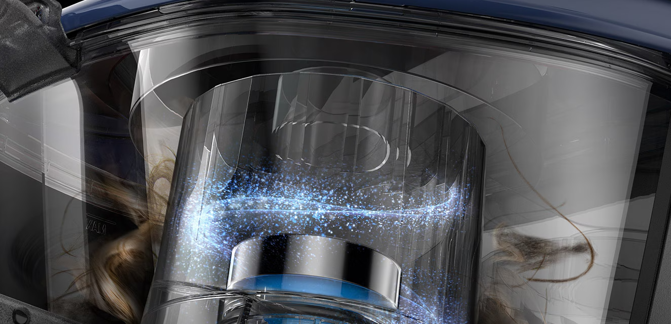 Công nghệ hút xoáy Cyclone không chỉ tạo ra lực hút mạnh mẽ mà còn giúp loại bỏ bụi bẩn và vi khuẩn một cách hiệu quả.