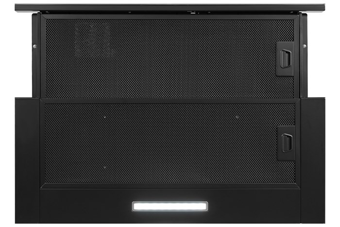 Với kích thước W700 x D303 x H205mm, máy hút khói khử mùi có thiết kế tinh tế, hiện đại, thích hợp với mọi không gian nhà bếp từ cổ điển đến hiện đại. Máy sử dụng chất liệu sơn tĩnh điện đen và kính, tạo nên một vẻ ngoài sang trọng và lịch lãm.