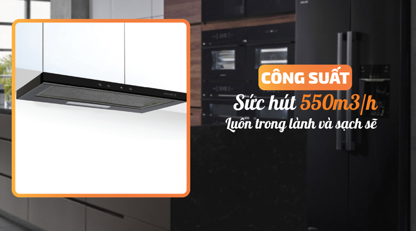 Sở hữu công suất hút ấn tượng lên đến 550 m3/h, máy hút khói khử mùi Malloca không chỉ giúp loại bỏ mùi thức ăn khó chịu mà còn đảm bảo không gian bếp của bạn luôn sạch sẽ, tươi mát.