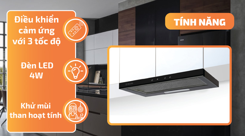 Sản phẩm được trang bị bảng điều khiển cảm ứng, 3 tốc độ, giúp người dùng dễ dàng tùy chỉnh theo nhu cầu sử dụng. Đặc biệt, máy còn sở hữu hệ thống lưới lọc nhôm hiện đại, có khả năng khử mùi bằng than hoạt tính và ống thoát Ø120.
