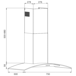 Máy hút có kích thước W750 x D500 x H558~938mm, phù hợp với nhiều không gian bếp khác nhau từ nhỏ đến lớn. Sự linh hoạt về kích thước giúp máy dễ dàng hòa nhập vào bất kỳ không gian bếp nào, tăng thêm sự tiện nghi cho người dùng.