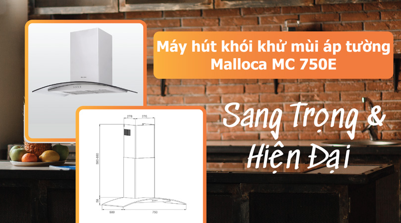 Máy hút khói khử mùi áp tường Malloca MC 750E là sự lựa chọn hoàn hảo cho những ai mong muốn mang đến cho không gian bếp của mình sự sang trọng, hiện đại và đẳng cấp. Với thiết kế tinh tế, công suất hút mạnh mẽ, chức năng hút khói khử mùi hiệu quả, cùng đèn chiếu sáng tiện dụng, máy hút khói này đáp ứng tốt nhu cầu của người dùng và là một sản phẩm không thể thiếu trong mỗi gia đình.