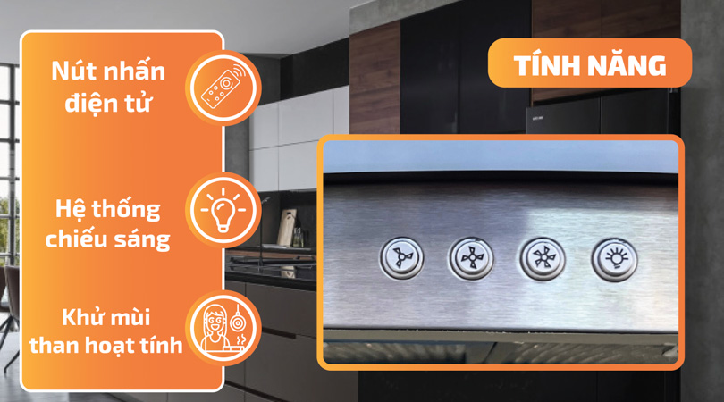 Máy hút không chỉ hút khói mà còn có khả năng khử mùi hiệu quả nhờ vào phụ kiện đi kèm là than hoạt tính. Đây là giải pháp hoàn hảo giúp không gian bếp của bạn luôn sạch sẽ, thoáng đãng và tạo cảm giác thoải mái cho người dùng.