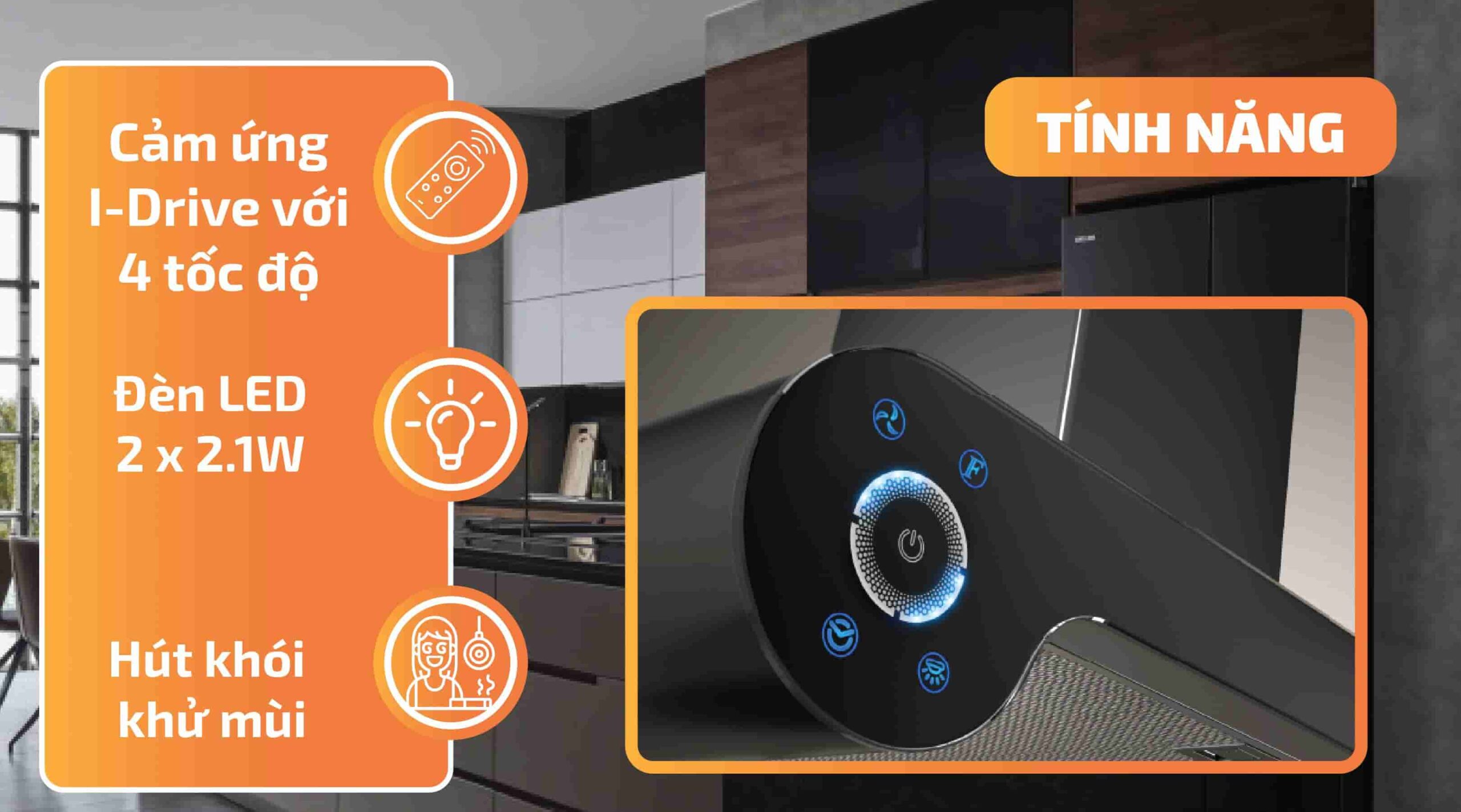 Với khả năng hút mạnh mẽ lên đến 800m3/h và đồng thời sử dụng 2 phương pháp khử mùi: than hoạt tính và ống thoát ra ngoài, mang lại hiệu quả khử mùi tối ưu, sản phẩm này có thể nhanh chóng loại bỏ hơi mỡ, khói và mùi thực phẩm khó chịu ra khỏi không gian bếp.