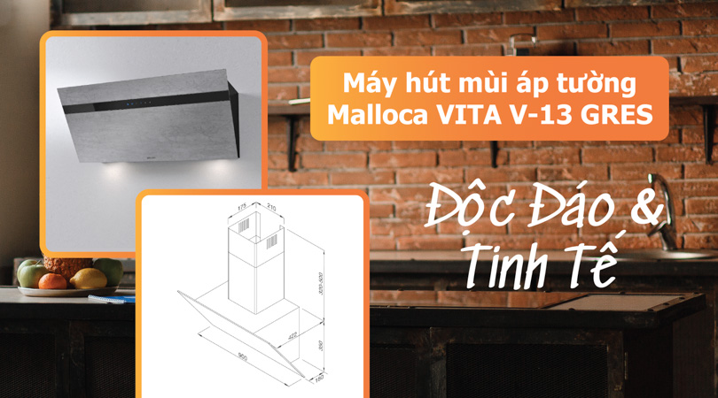Máy hút mùi áp tường Malloca VITA V-13 GRES đến từ thương hiệu Malloca, một trong những nhà sản xuất thiết bị nhà bếp hàng đầu đến từ Ý. Sản phẩm mang đến sự kết hợp hoàn hảo giữa hiệu suất cao, công nghệ tiên tiến và thiết kế tinh tế, đem lại không gian bếp hiện đại và sang trọng cho ngôi nhà của bạn.