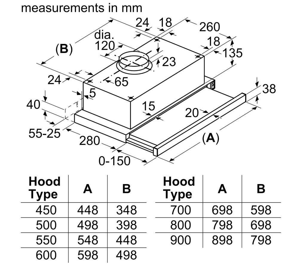 Đồng thời máy hút mùi Bosch DFT63CA61B có đường kính ống thoát khí là 120mm cho khả năng hút vượt trội.