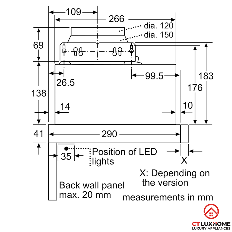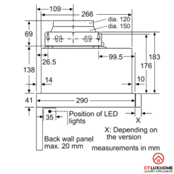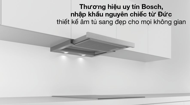 Máy hút mùi Bosch với thiết kế âm tủ nhỏ gọn với chiều ngang 59.8 cm, tiết kiệm không gian, phù hợp với bếp nhỏ và vừa.