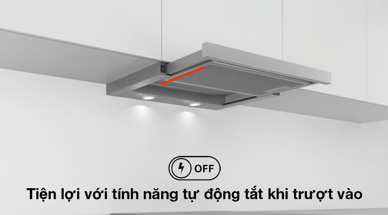 Máy hút mùi được trang bị tính năng tự tắt khi trượt vào