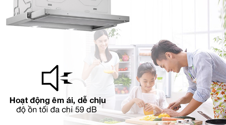 Độ ồn tối đa chỉ 59 dB tương đương cuộc nói chuyện bình thường, không gây ảnh hưởng đến các hoạt động trong gia đình