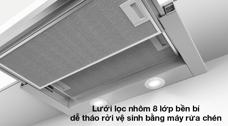 Máy hút mùi âm tủ Bosch DFL064W53B xuất xứ và nhập khẩu nguyên chiếc từ Đức đảm bảo chất lượng, trang bị tính năng tự ngắt khi trượt tấm lọc vào, lưới lọc nhôm 8 lớp hạn chế dầu mỡ đi sâu ảnh hưởng đến linh kiện, nâng cao hiệu quả lọc, mang lại nguồn không khí thoáng đãng cho gian bếp nhà bạn.