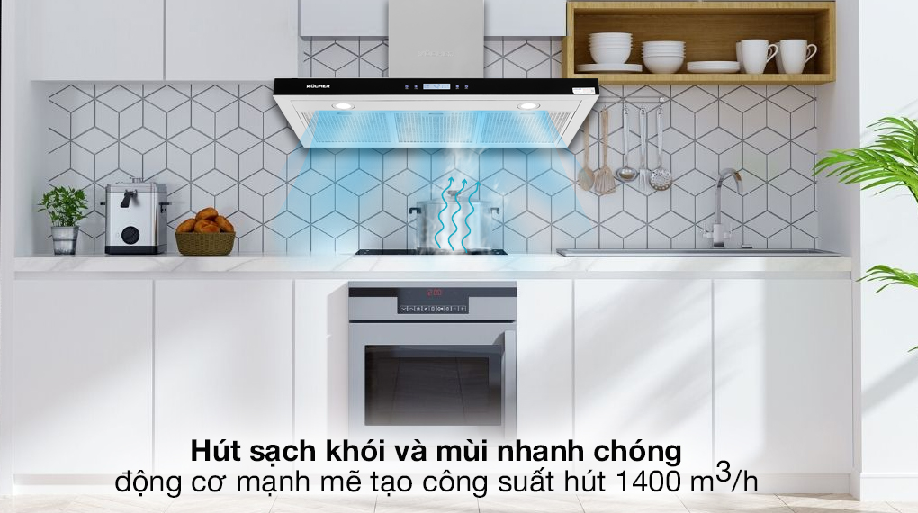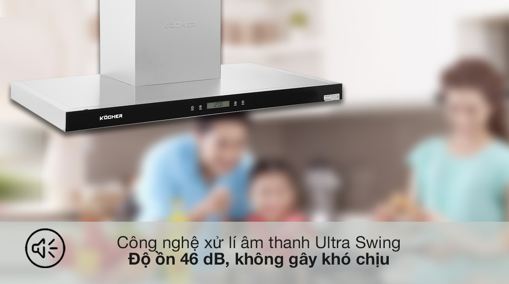 Máy hút mùi Kocher 1 quạt hút hoạt động bằng động cơ tuabin tích hợp công nghệ xử lí âm thanh Ultra Swing siêu êm
