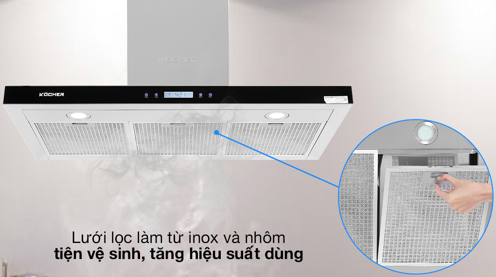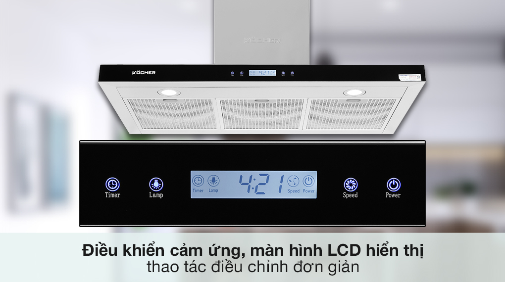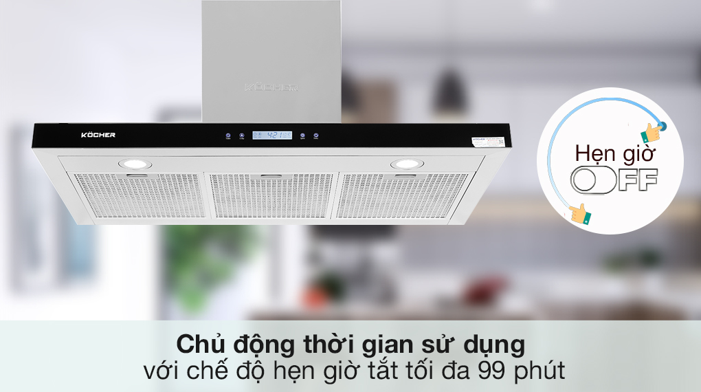 Máy hút mùi Kocher có chế độ hẹn giờ tắt tối đa 99 phút