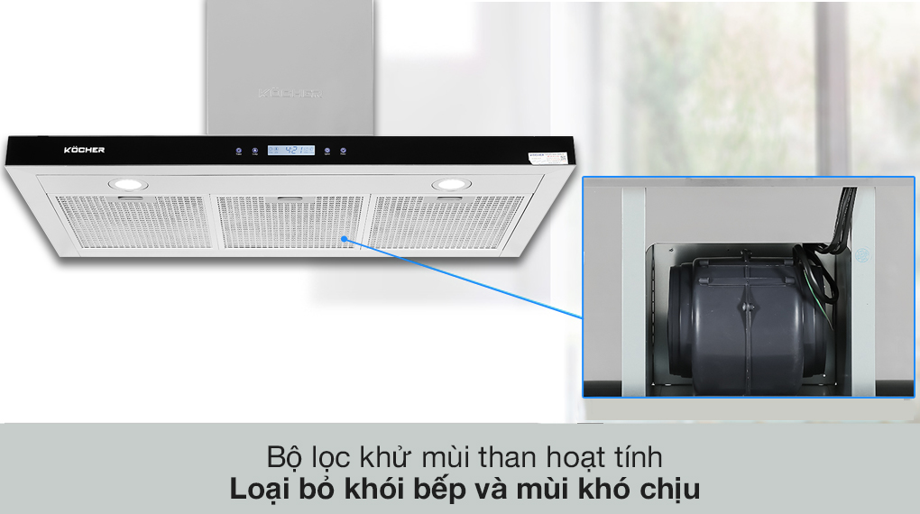 Máy hút mùi áp tường Kocher K-225C 90 công suất hút lớn, độ ồn thấp, bảng điều khiển cảm ứng hiện đại cùng chức năng hẹn giờ giúp chủ động thời gian, hút mùi hiệu quả, trả lại cho bạn không gian bếp thoáng mát, sạch sẽ.