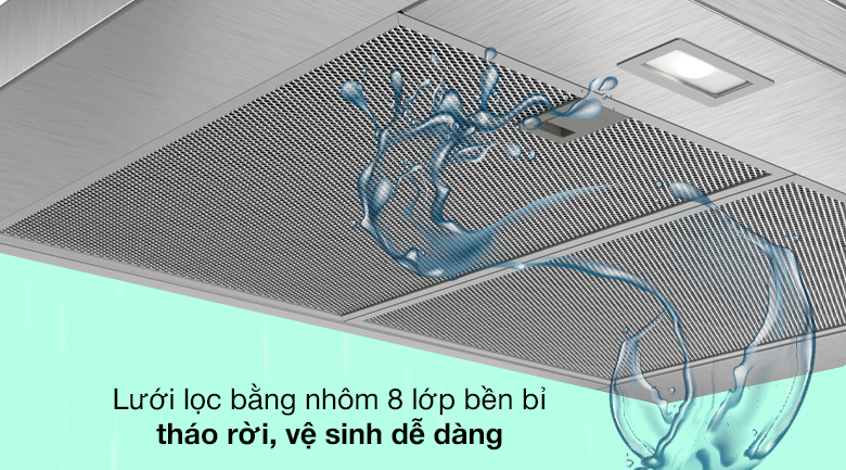 Tấm lọc có thể tháo rời dễ dàng vệ sinh, với 8 lớp ngăn dầu mỡ sẽ giúp bảo vệ các thiết bị bên trong tăng tuổi thọ cho động cơ.