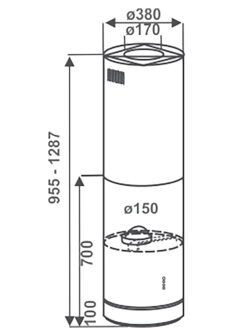 Với đường kính thân trụ là 38cm máy có thể kết hợp với rất nhiều kiểu bếp vì hầu hết các bếp đều có kích thước tương xứng. Máy phù hợp với những không gian rộng rãi sẽ tăng thêm vẻ sang trọng cho gian bếp của bạn. Chất liệu của máy được làm bằng chất liệu inox cao cấp tăng độ bền cho máy và độ an toàn cho người sử dụng.