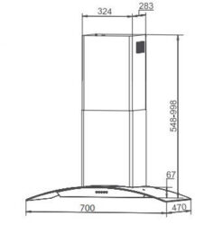 Máy hút mùi Canzy CZ-1870 có thiết kế dạng kính vát cong tông màu bạc inox vô cùng sang trọng kết hợp với kính trong viền xung quanh. Máy được cấu tạo chính từ chất liệu inox không gỉ, chống nhiệt, chống bẩn nên dễ dàng vệ sinh. Máy sử dụng điều khiển cảm ứng hiển thị rõ ràng cho ai cũng dùng được dễ dàng. Máy có kích thước 700 mm, ống thoát khí đường kính 150mm.