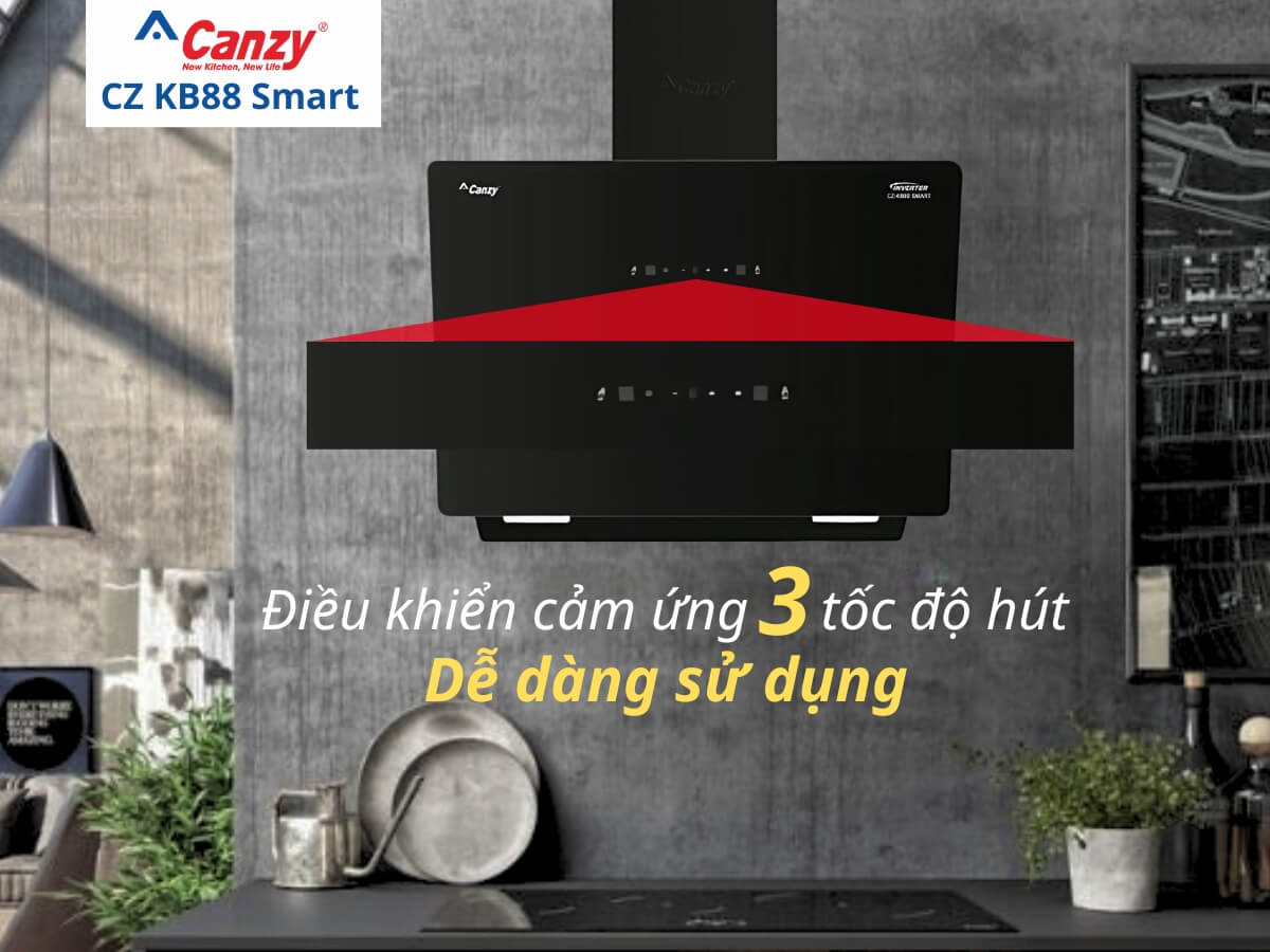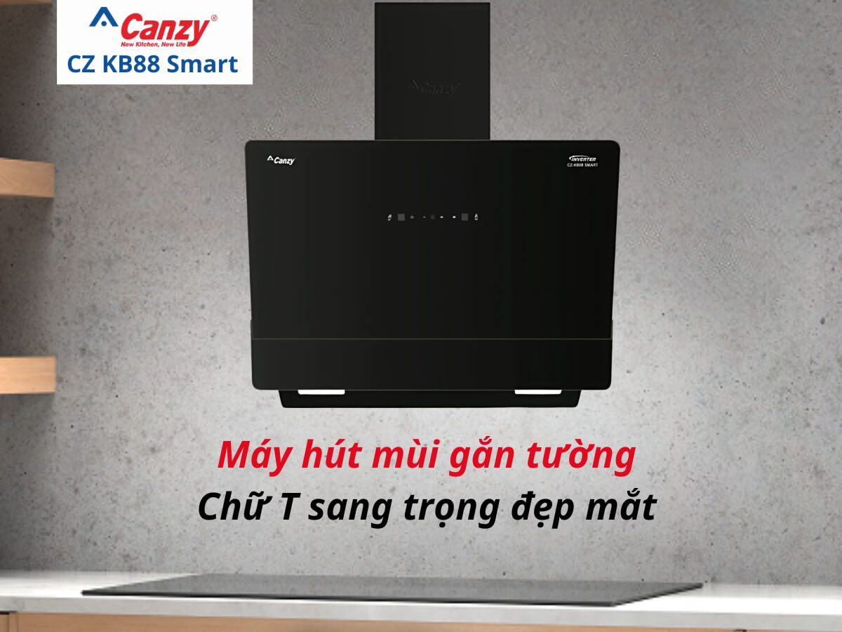 Máy hút mùi Canzy CZ KB88 Smart thiết kế gắn tường kính vát hiện đại