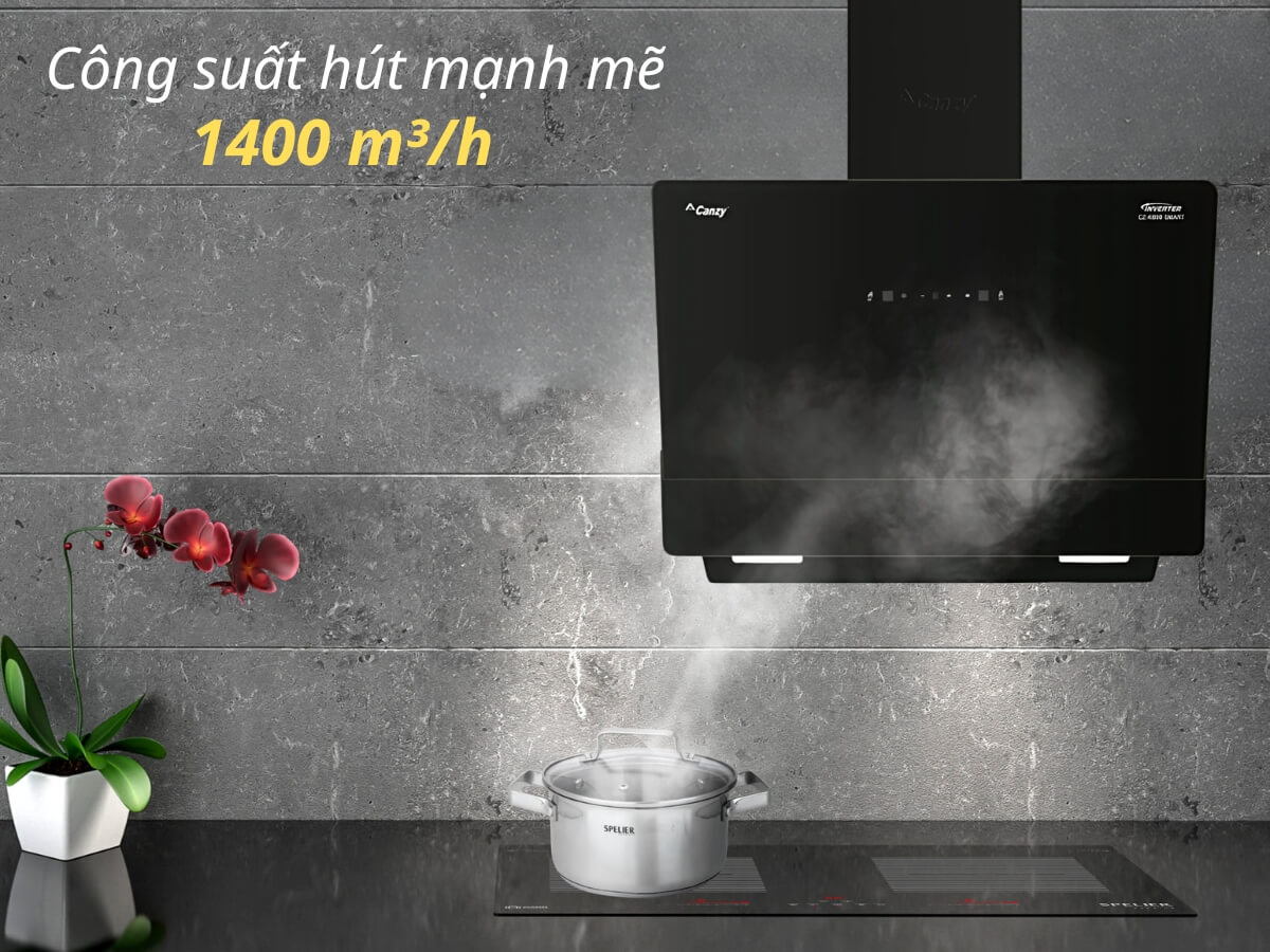 Máy hút mùi Canzy CZ KB88 Smart trang bị động cơ làm việc mạnh mẽ, tạo ra công suất lớn đến 1400 m³/h. Đây là một mức công suất ấn tượng trên dòng máy hút mùi, đem đến khả năng hút khói, khử mùi nhanh chóng và hiệu quả, loại bỏ được các mùi dầu mỡ, mùi thức ăn, hơi nóng, hơi nước… trong quá trình nấu nướng, nhanh chóng trả lại không khí trong lành, sạch sạch thoáng cho không gian bếp.