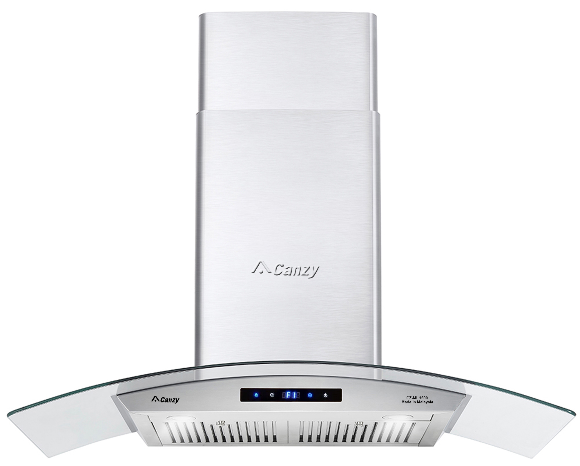 Máy hút mùi Canzy CZ-MLH690 sử dụng bảng điều khiển cảm ứng gồm 3 tốc độ hút phù hợp với lượng mùi và khói khi nấu ăn để đảm bảo sạch mùi cho không gian bếp nhà bạn. Hệ thống đèn chiếu sáng của máy gồm 2 đèn Led có tác dụng chiếu sáng và làm cho công việc nấu ăn thêm thuận lợi. Lưới lọc mỡ bằng inox dạng thanh nan kết hợp lẫy cài chống cháy để ngăn chặn triệt để mùi, bụi lọt vào bên trong máy gây hỏng động cơ. Tấm lưới này có thể tháo rời để vệ sinh một cách dễ dàng.