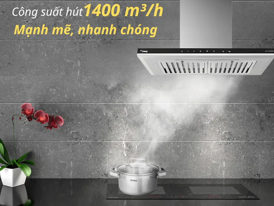 Máy hút mùi Canzy CZ-TS900SS được trang bị động cơ không chổi than BLDC Smart Inverter nhằm tạo ra một công suất hút lớn nhất. Công suất hút cực mạnh 1400m3/h giúp hút hết các mùi thức ăn làm sạch không khí mang lại cho căn bếp luôn thông thoáng.