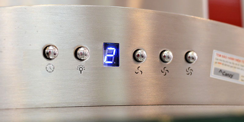 Máy hút mùi Canzy CZ DELUXE 90 sử dụng bảng điều khiển phím bấm gồm 3 tốc độ hút phù hợp với lượng mùi và khói khi nấu ăn để đảm bảo sạch mùi cho không gian bếp nhà bạn. Hệ thống đèn chiếu sáng của máy gồm 2 đèn led có tác dụng chiếu sáng và làm cho công việc nấu ăn thêm thuận lợi. Lưới lọc mỡ bằng hợp kim gồm nhiều lớp để ngăn chặn triệt để mùi, bụi lọt vào bên trong máy gây hỏng động cơ. Tấm lưới này có thể tháo rời để vệ sinh một cách dễ dàng.