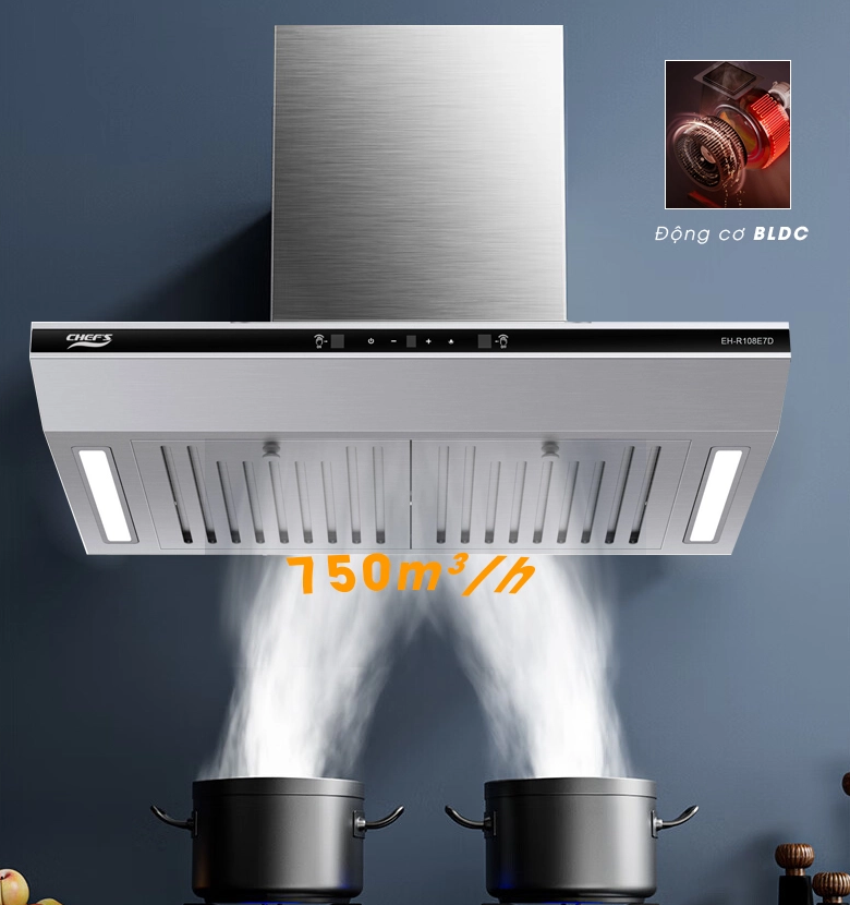 Hút mùi sử dụng động cơ BLDC hiện đại với tuổi thọ động cơ cao, tiết kiệm tối đa điện năng khi sử dụng