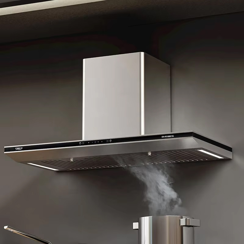 Máy hút mùi EH-R108E7D có thiết kế dạng chữ T nhỏ gọn, bề mặt phủ kính cường lực hiện đại, sang trọng dễ dàng vệ sinh