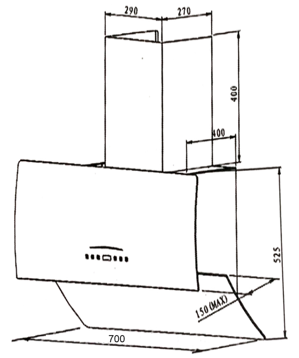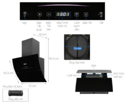 Máy hút mùi EH-R706E7D có thiết kế dạng kính vát sang trọng độc đáo. Hút màu đen cho gian bếp thêm sang trọng, thẩm mỹ.