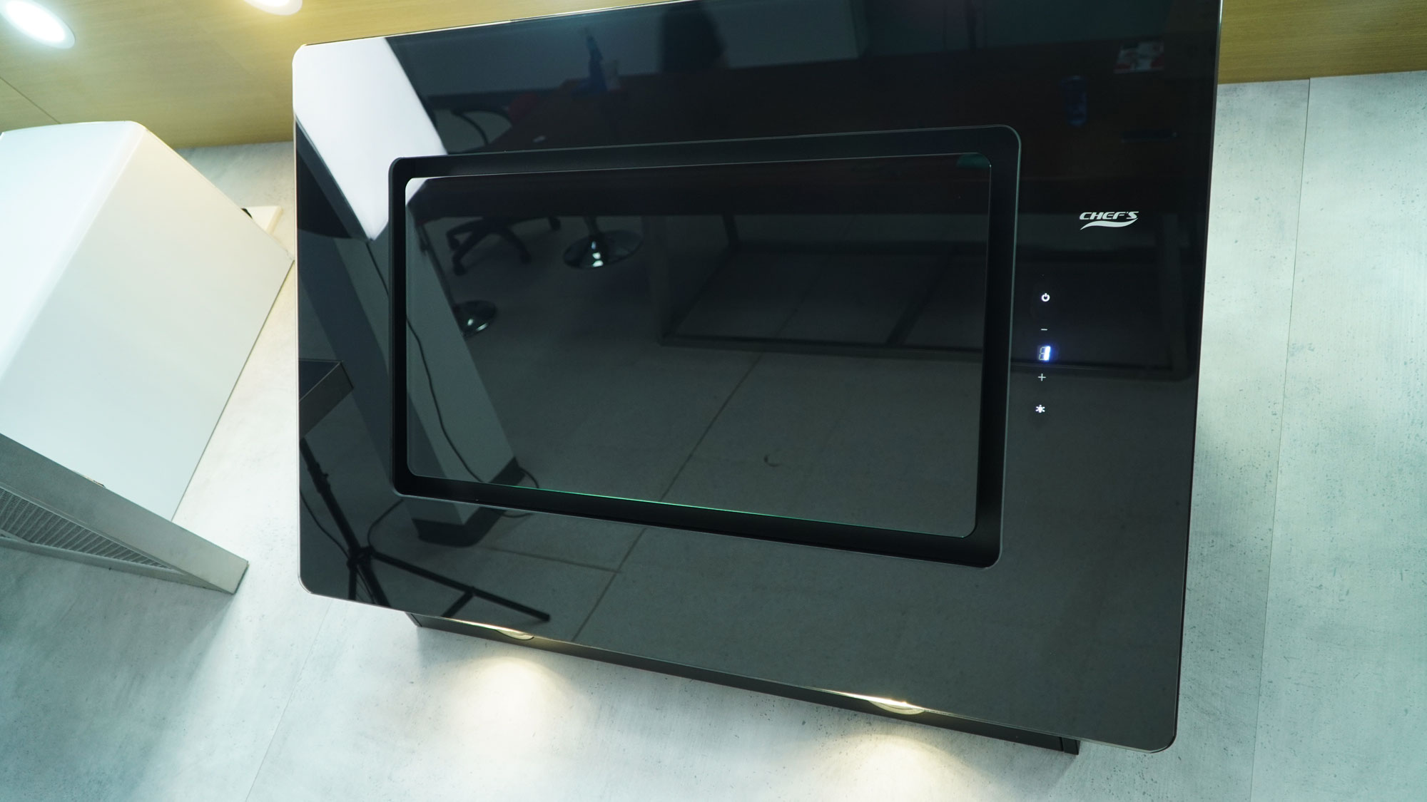 Máy hút mùi EH-R705E9 có thiết kế dạng kính gắn tường độc đáo, màu đen sang trọng, tăng tính thẩm mỹ cho gian bếp.