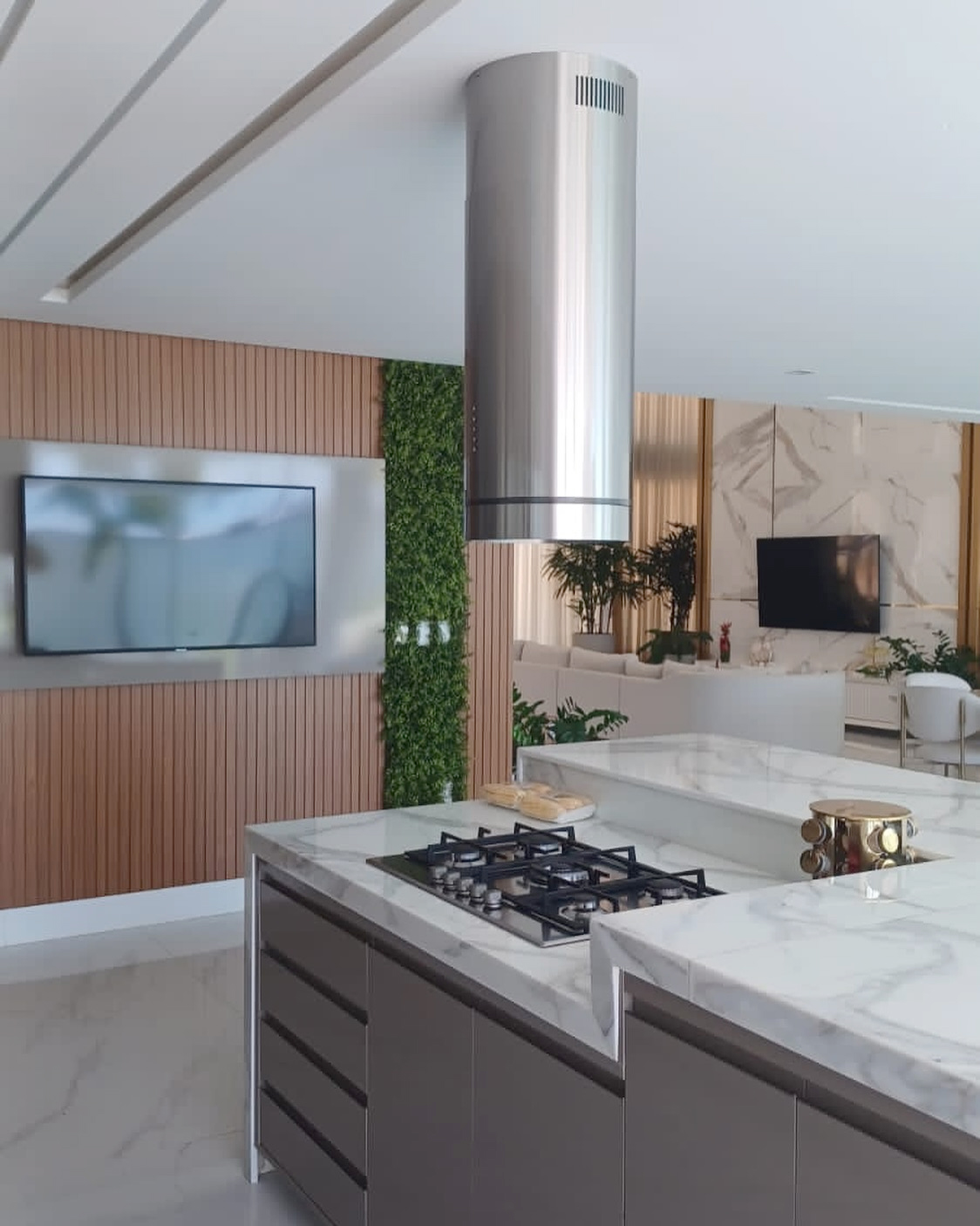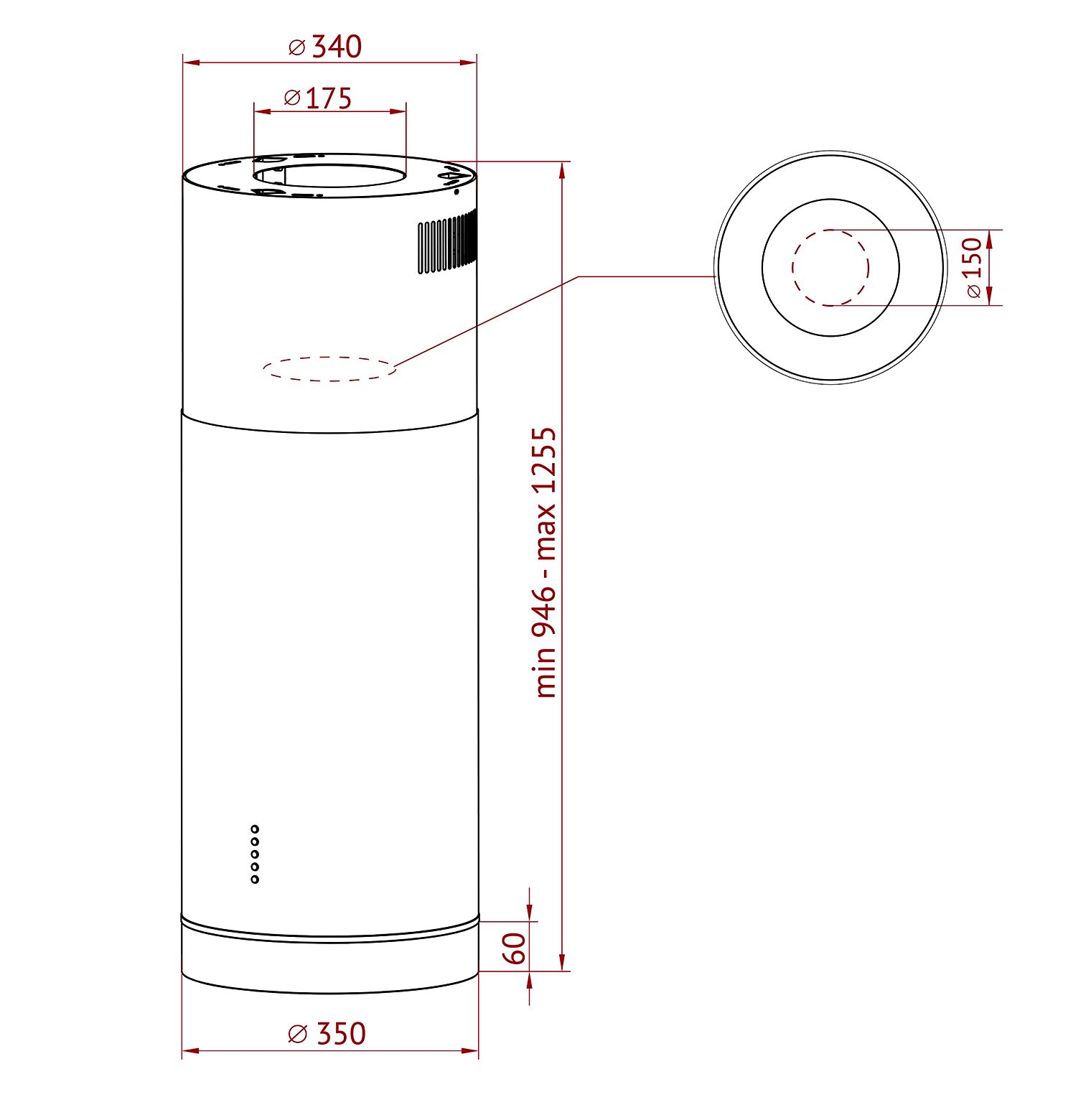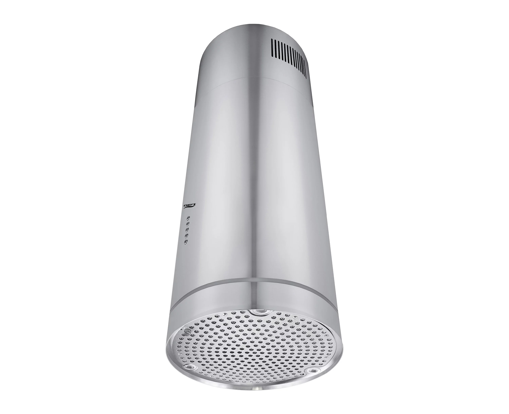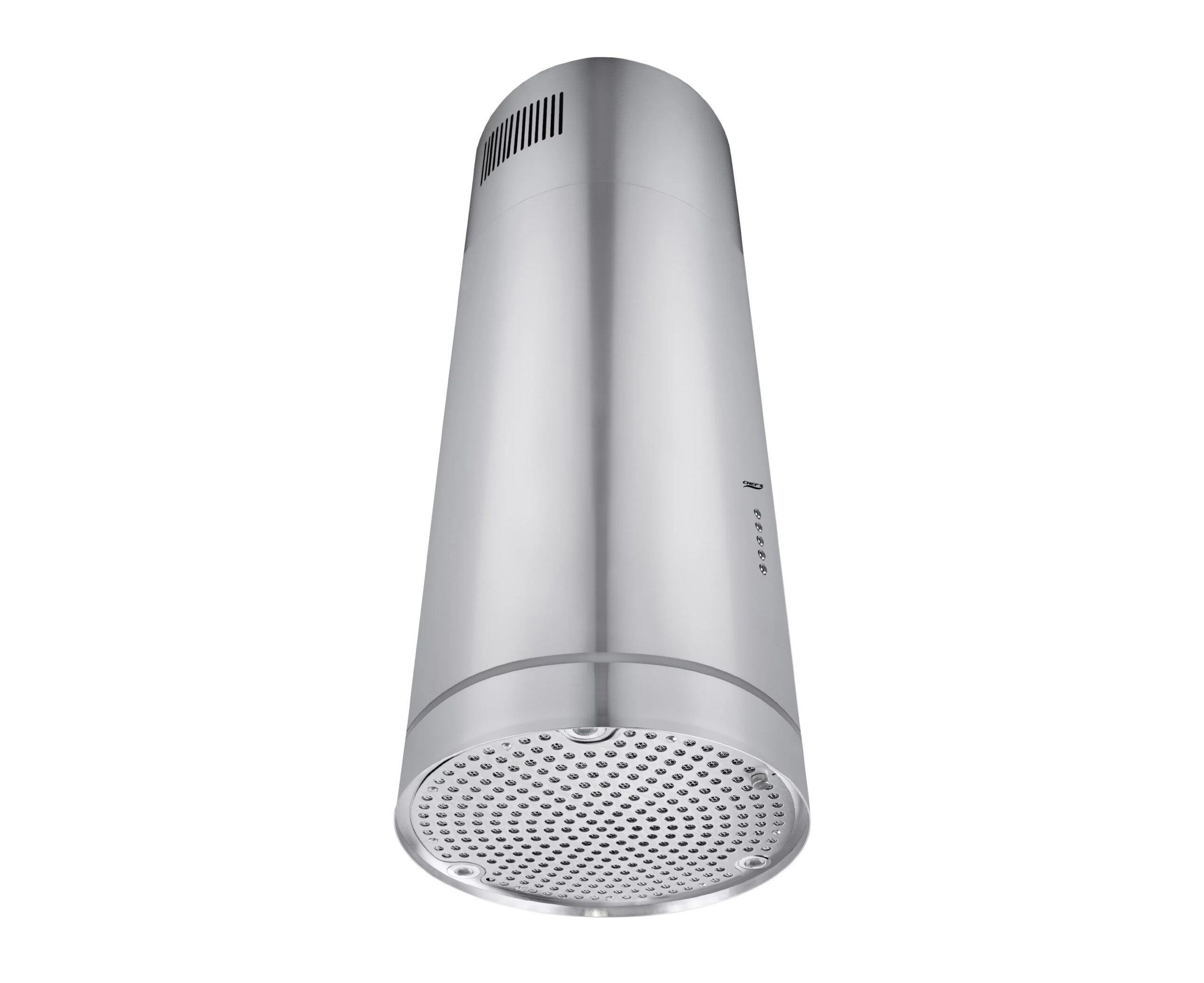 Máy hút mùi hình trụ sang trọng độc đáo, phù hợp với các gian bếp thiết kế chữ L, bàn đảo độc lạ. Màu sắc inox sáng, sang trọng và nổi bật.