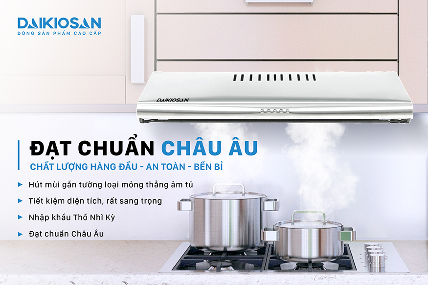 Máy hút mùi Daikiosan DKH-000006 xứng đáng là sản phẩm hút mùi chất lượng hàng đầu nhờ được nhập khẩu nguyên chiếc từ Thổ Nhĩ Kỳ. Sản phẩm được kiểm định tiêu chuẩn gắt gao và đạt chứng nhận châu Âu về an toàn cho người tiêu dùng, bảo vệ môi trường, tính tương thích được quy định tại thị trường Châu Âu (28 quốc gia).