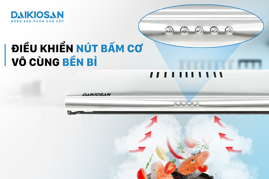 Máy hút mùi Daikiosan DKH-000006 vận hành êm ái với độ ồn dưới 55dB để giữ gìn môi trường sinh hoạt lành mạnh, yên tĩnh.