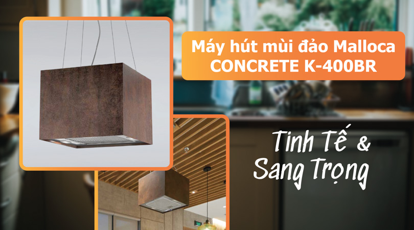 Kiểu lắp treo độc lập decor giúp Malloca CONCRETE K-400BR dễ dàng lắp đặt và phù hợp với nhiều không gian bếp khác nhau. Chất liệu Ceramic màu sắt rỉ toàn thân máy hút mùi không chỉ tăng tính thẩm mỹ mà còn đảm bảo độ bền và chống ẩm mốc hiệu quả