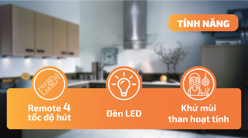 Bảng điều khiển remote cho phép người dùng dễ dàng điều chỉnh 4 tốc độ hút, phù hợp với nhu cầu sử dụng của từng gia đình. Sản phẩm được trang bị tiện ích khử mùi bằng than hoạt tính và đường ống thoát ra ngoài Ф 150 mm, đảm bảo không gian bếp luôn sạch sẽ và thoáng mát. Đèn chiếu sáng tích hợp giúp bạn dễ dàng theo dõi quá trình nấu nướng, đồng thời tạo điểm nhấn cho không gian bếp.