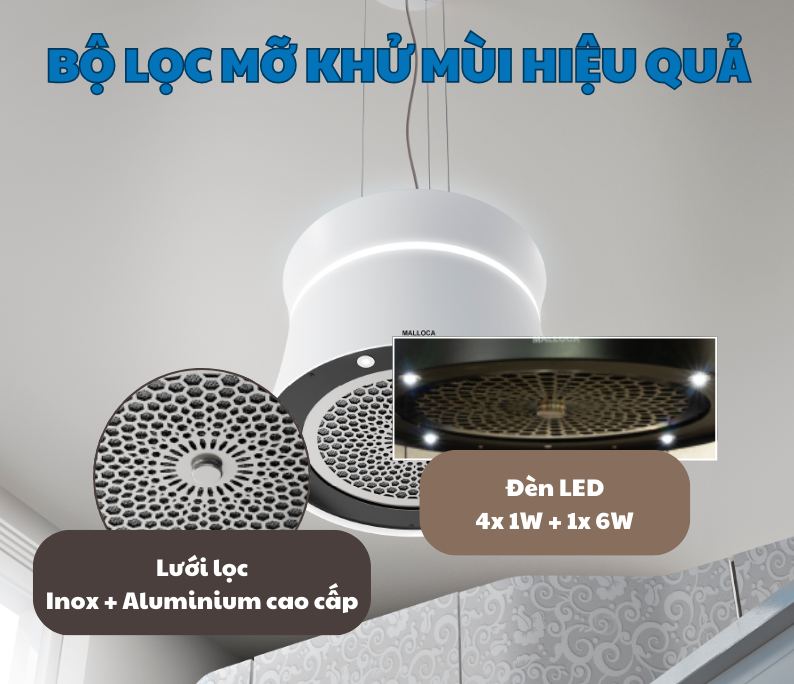 Máy hút mùi Malloca SOPHIE K 500W: Đảo Ngọc Thanh Lịch Giữa Bếp Sang, Hút Sạch Mùi, Thêm Vẻ Tinh Tế