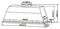 Với chiều ngang 705mm, máy hút mùi này có thể hoạt động trên diện tích rộng, đồng thời đường ống dẫn khí rộng 150mm giúp tăng cường khả năng hút mạnh mẽ và hiệu quả.