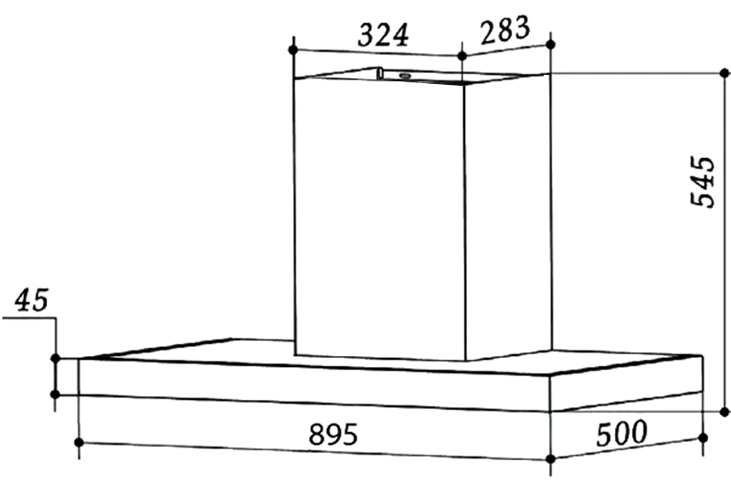 Kích thước của máy hút mùi Faster Quatro Lux 90SB là R895 x S500 x C545 (mm).