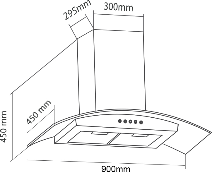 Máy hút mùi Eurosun EH-90K06 có kích thước là: R900 x S450 x C450 (mm).