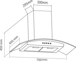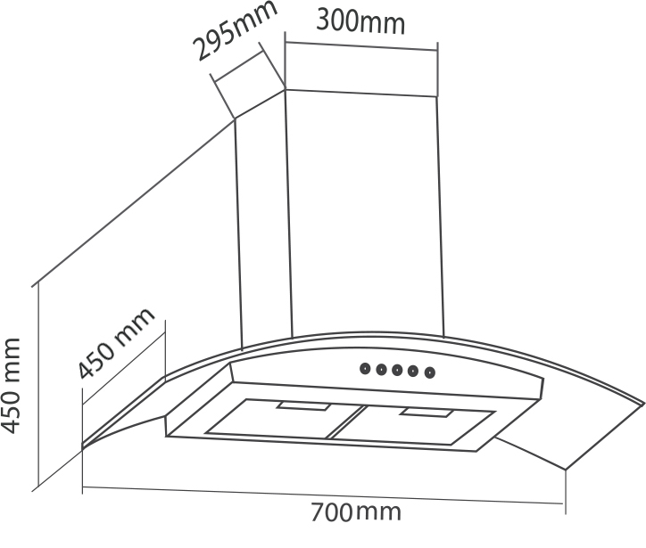 Máy hút mùi Eurosun EH-70K06S có kích thước là: R700 x S450 x C450 (mm).