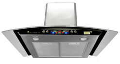 Thiết kế máy hút mùi gắn tường kính cong sang trọng, tạo điểm nhấn cho căn bếp