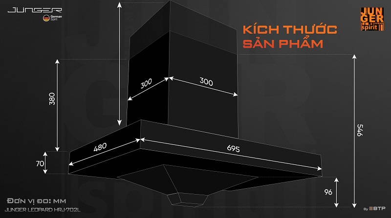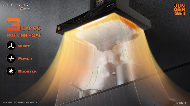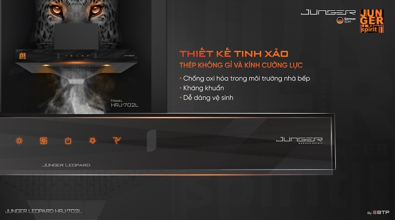 Máy hút mùi Junger Leopard HRJ-702L – Siêu hút mùi TURBO – Hút khỏe chạy êm là dòng máy hút mùi thế hệ mới của thương hiệu gia dụng nhà bếp cao cấp Junger. Được nghiên cứu và sản xuất trên dây chuyền công nghệ Junger đạt chuẩn Châu Âu, Junger Leopard HRJ-702L không chỉ bền bỉ mà còn xử lý mùi hiệu quả, sạch êm tuyệt đối, xứng đáng là thiết bị tiện ích thông minh nên có trong mỗi gia đình.