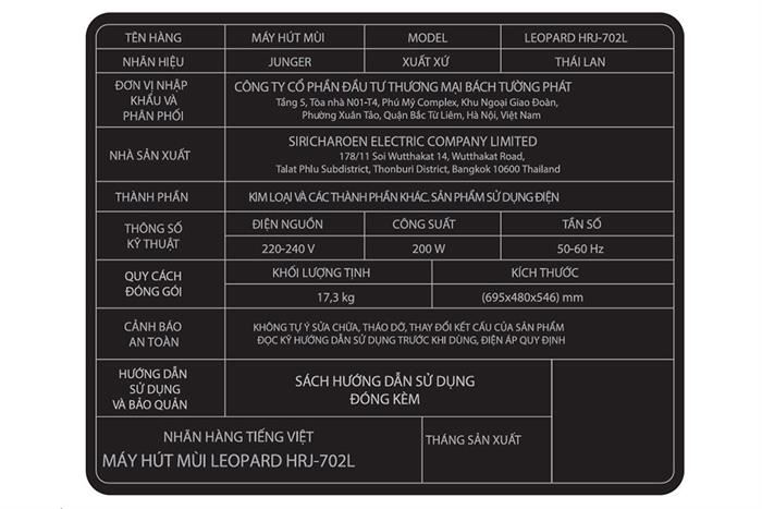 Các thành phần của máy hút mùi Junger Leopard HRJ-702L đều được nghiên cứu và sử dụng vật liệu bền bỉ, chắc chắn đảm bảo vận hành êm ái, ổn định trong suốt thời gian dài.