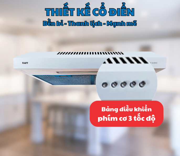 Hệ thống điều khiển cơ 3 tốc độ giúp người dùng dễ dàng điều chỉnh công suất hút phù hợp với nhu cầu: từ chế độ nhẹ nhàng cho việc nấu nướng thông thường đến công suất tối đa để xử lý khói dầu đậm đặc. Thiết kế cơ học đơn giản, bền bỉ, hạn chế hỏng hóc so với các dòng điều khiển cảm ứng.