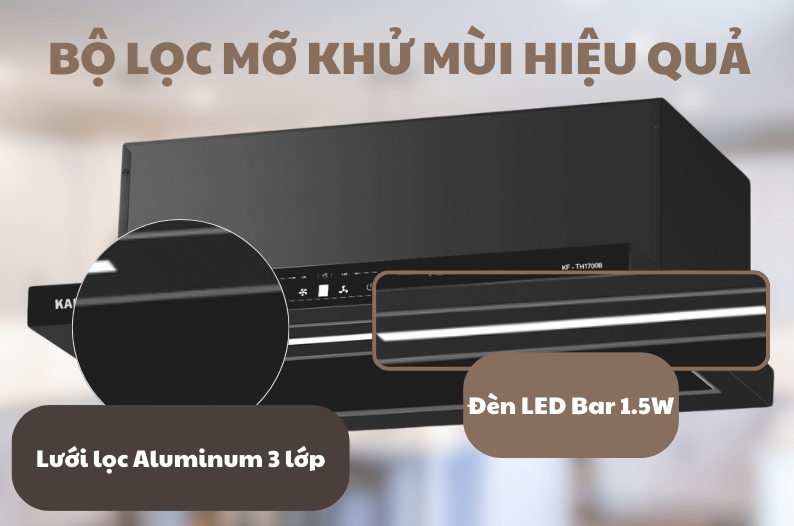 Máy hút mùi âm tủ Kaff KF-TH1700B là sự kết hợp tinh tế giữa thiết kế hiện đại, công nghệ tiên tiến và hiệu suất vượt trội, mang đến không gian bếp trong lành và thoáng đãng cho gia đình bạn. Với những ưu điểm nổi bật, KF-TH1700B chắc chắn sẽ là người bạn đồng hành lý tưởng trong mỗi bữa ăn.