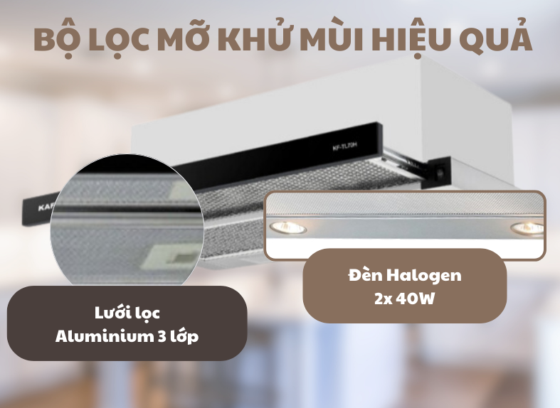 Máy hút mùi Kaff KF-TL90H bạn dễ dàng lựa chọn chế độ hút khử phù hợp với không gian bếp. Bởi máy có 2 chế độ hút khử mùi đó là chế độ khử bằng than hoạt tính tại chỗ và chế độ hút đẩy ra ngoài qua ống dẫn với kích thước ống dẫn dài 120mm. Lưới lọc mỡ Inox + Aluminium 5 lớp dễ tháo lắp vệ sinh.