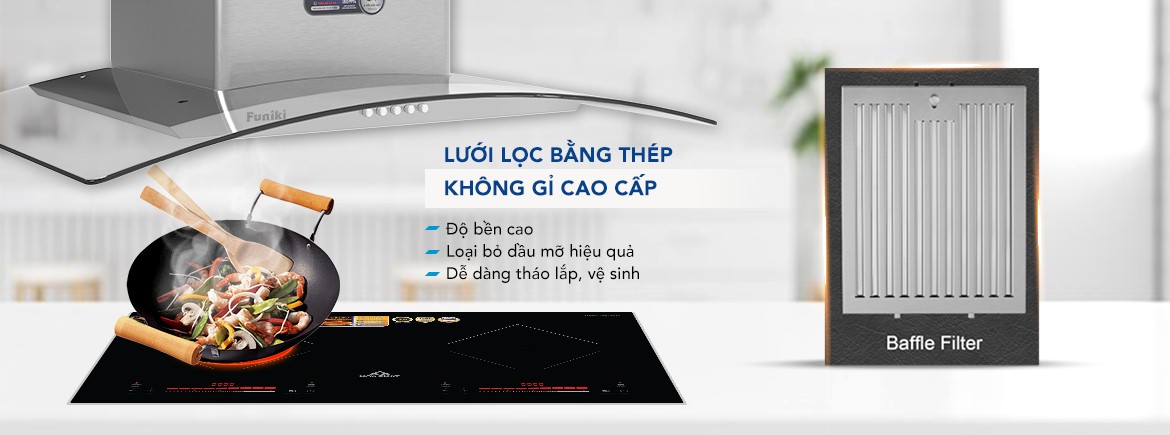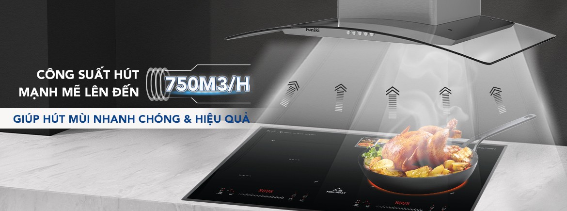 Máy hút mùi Funiki có 3 tốc độ hút tiện lợi, phù hợp với mọi không gian nhà bếp.