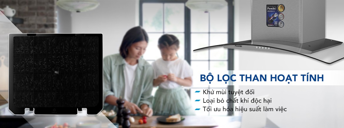 Máy hút mùi Funiki HKH9655 được trang bị bộ lọc carbon (than hoạt tính) có tác dụng loại bỏ các mùi thức ăn và chất khí độc hại sinh ra trong quá trình nấu nướng nhằm cải thiện chất lượng không khí trong không gian bếp và tối ưu hóa hiệu suất làm việc, tiết kiệm năng lượng.