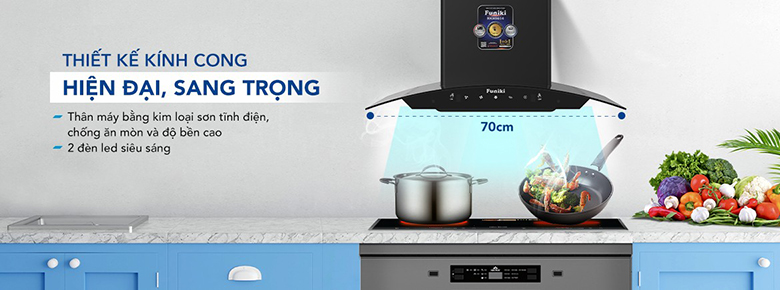 Trong gian bếp hiện đại, máy hút mùi là một thiết bị quan trọng giúp loại bỏ mùi hôi, hơi nước và dầu mỡ, tạo không gian sạch sẽ và thoáng mát. Máy hút mùi kính cong Funiki HKH9654 thiết kế đẹp, công suất lớn, bảng điều khiển cảm ứng hiện đại và cảm biến vẫy tay thông minh không chạm sẽ góp phần gia tăng trải nghiệm mỗi lần đứng bếp.