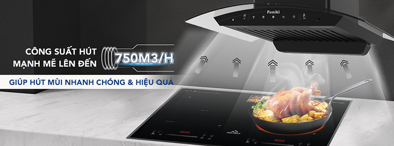 Funiki HKH9654 được trang bị cánh quạt làm bằng kim loại có hiệu suất hút mạnh mẽ, chịu nhiệt tốt, chống biến dạng và ít gây ồn với độ bền cao. Công suất hút lên tới 750m3/h giúp loại bỏ triệt để khói và mùi sinh ra trong quá trình nấu nướng, trả lại không khí thông thoáng, dễ chịu cho căn bếp, giúp người nội trợ thoải mái chế biến những bữa ăn thơm ngon cho gia đình mà không lo bị ám mùi khó chịu lên quần áo. 3 tốc độ hút mùi chuyên sâu, phù hợp với nhiều loại thức ăn.