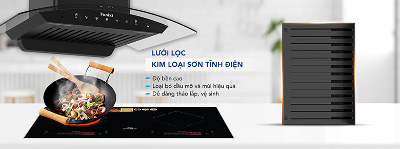 Máy hút mùi kính cong Funiki HKH9654 được trang bị 2 bộ lọc mỡ bằng kim loại sơn tĩnh điện cao cấp có tác dụng loại bỏ dầu mỡ và các hạt bụi lớn từ không khí giúp bảo vệ động cơ, ngăn chặn tắc nghẽn, giảm bụi bẩn, nhờ đó gia tăng tuổi thọ của máy hút mùi và duy trì hiệu suất hút mùi hiệu quat. Bộ lọc được thiết kế dễ dàng tháo lắp và vệ sinh hàng ngày.